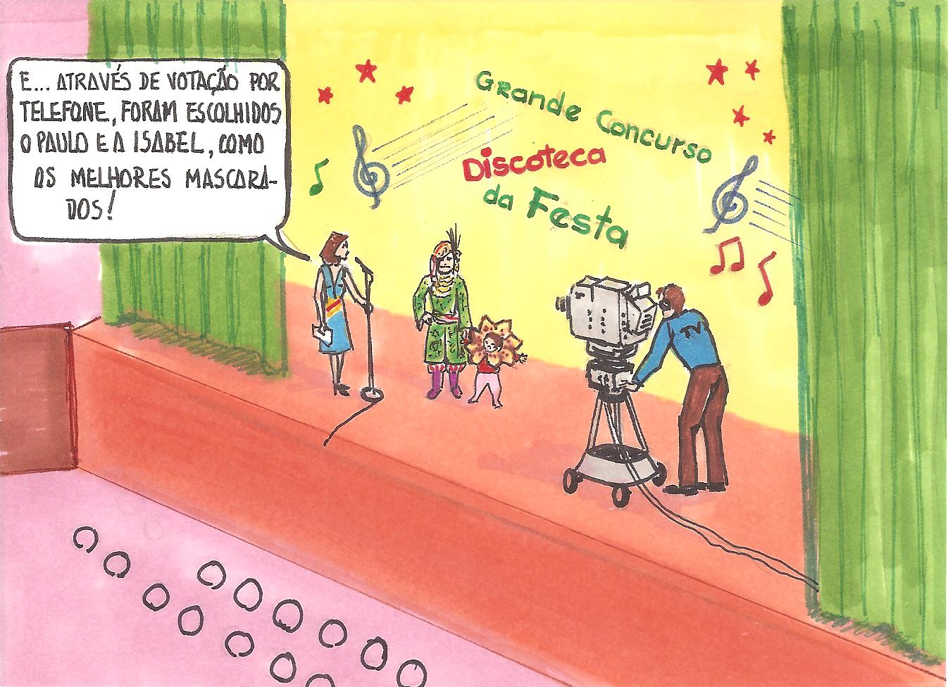 Julgo ter sido em 1988 que Henrique Leorne fez as vinhetas da banda desenhada A Festa, a partir de um texto meu. Descobri nos meus papéis esta colaboração – na altura, trabalhávamos na indústria das telecomunicações – e resolvi reproduzi-las aqui, numa homenagem ao autor dos desenhos. A Festa era um concurso do melhor mascarado no Carnaval – e que até envolve a televisão.