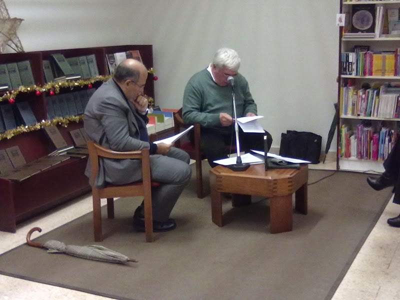 No caso presente, não me interessa a exegese para comentar a obra de Péguy, mas apenas acompanhar a leitura de poemas como ela foi feita esta semana por Luís Miguel Cintra [na fotografia com o padre José Tolentino de Mendonça]. Como se escreve na contracapa do livro, citando Paul Claudel, o essencial é a tomada de consciência em Péguy de se ter tornado cristão, que se aplica a Cintra. Da última vez que o vira foi no palco, a representar Pílades, a partir da obra de Pasolini. Agora, ele aparece a falar da fragilidade da condição humana e da iluminação da obra.