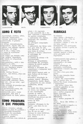 “Tudo começou com um grupo de jovens profissionais da rádio que em meados da década de 60, em pleno reino do nacional-cançonetismo, de Rafael e de Gianni Morandi, tocava regularmente o que de melhor e mais avançado se fazia na música popular anglo-americana, constituindo um espaço radiofónico alternativo que serviu de referência de qualidade a toda uma geração marcada pelo movimento associativo universitário, pela resistência antifascista, pelo trauma da guerra colonial, pela ruptura com os códigos morais pequeno-burgueses dos filmes cor-de-rosa de Doris Day e Marisol”.